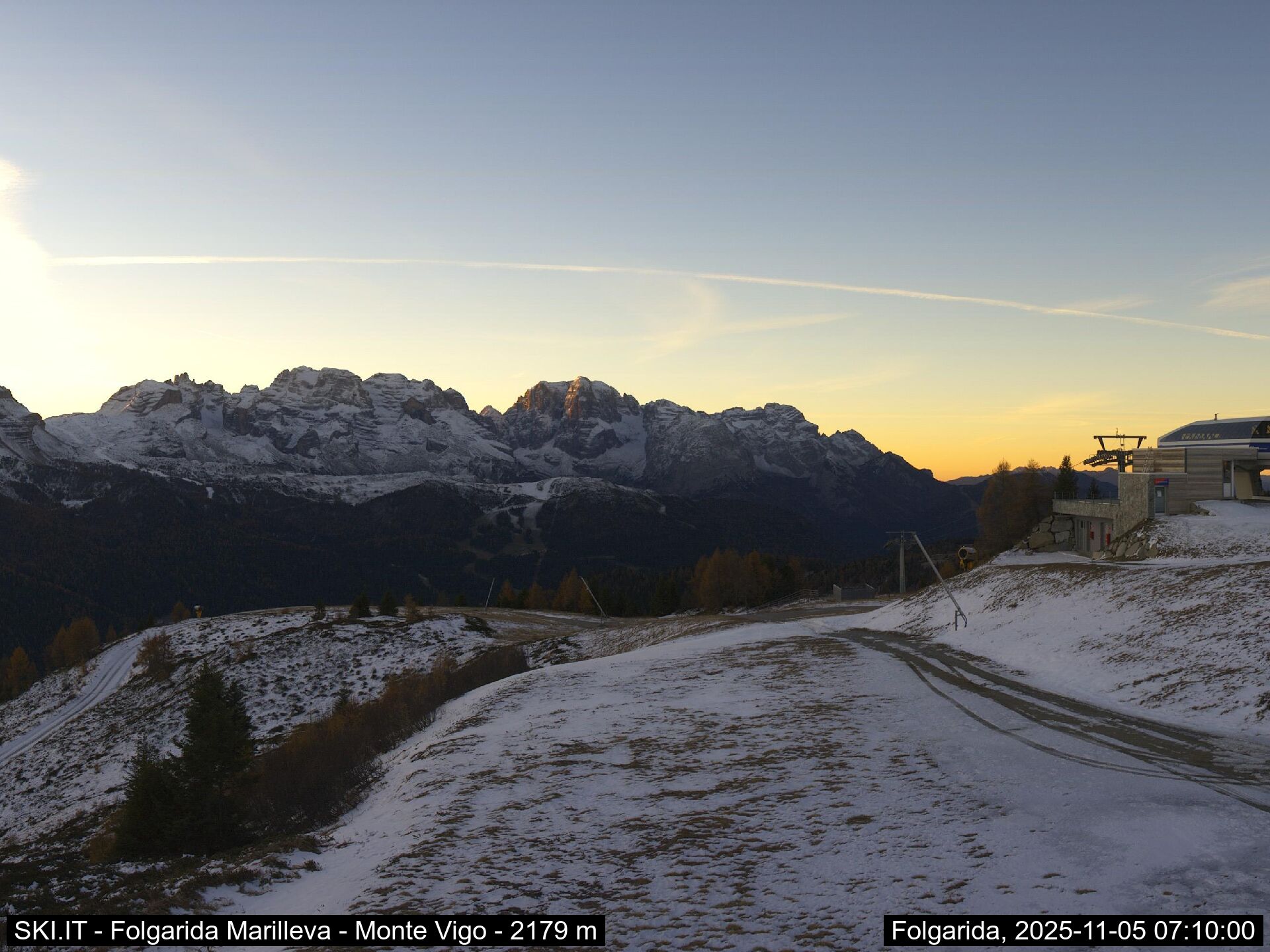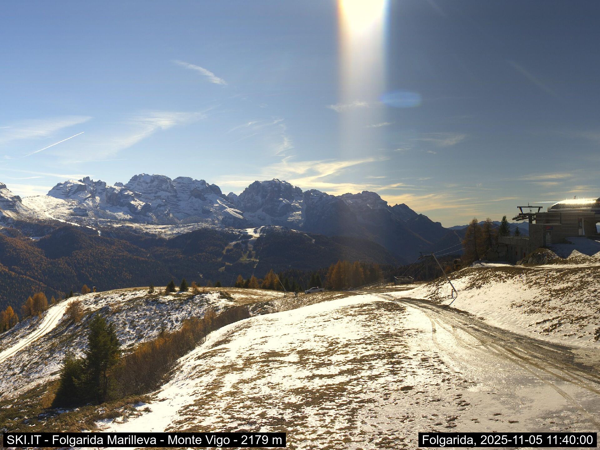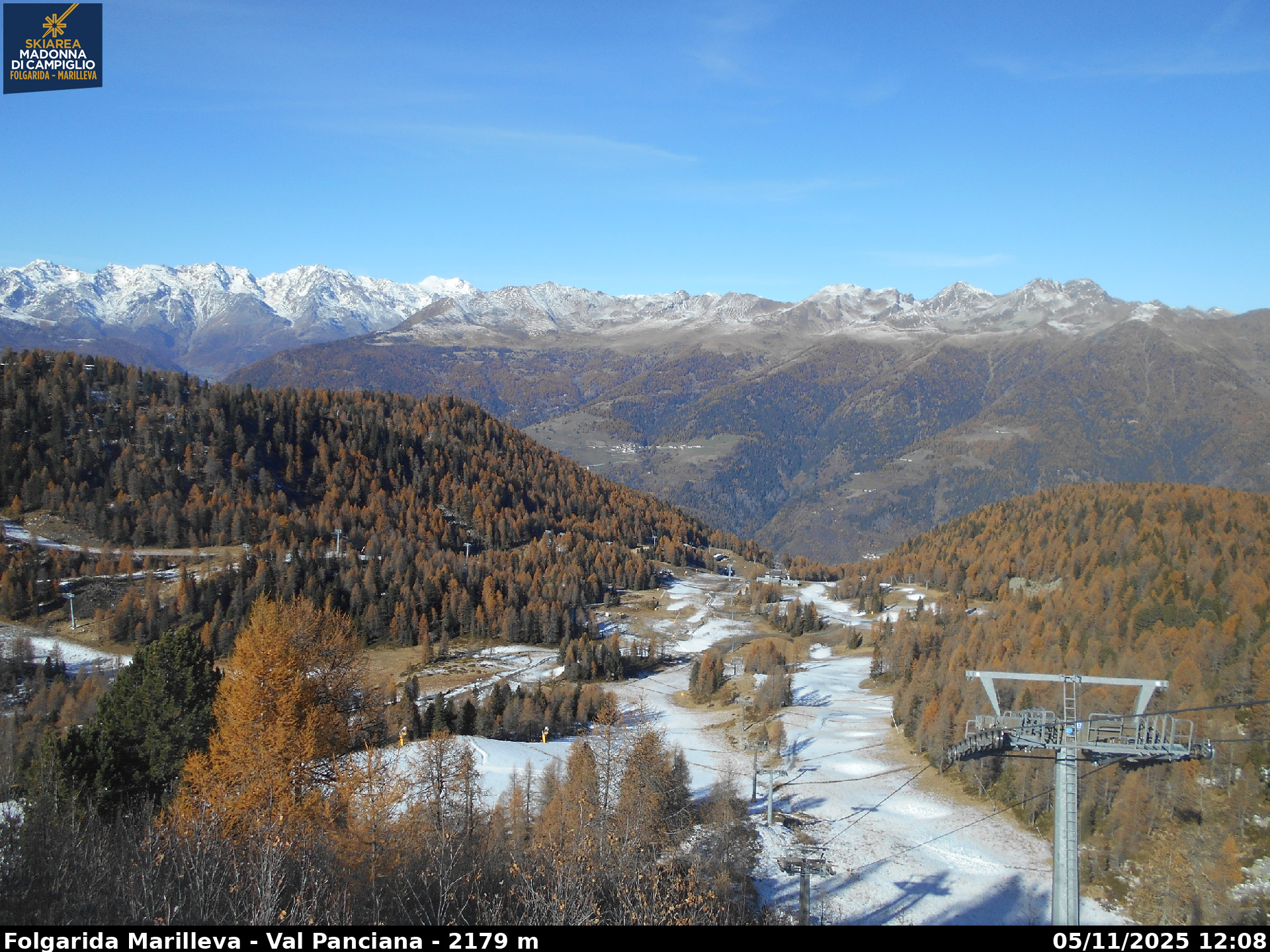 Webcamlive Folgarida - Marilleva. Le webcam sul comprensorio sciistico di Marilleva, in Val di Sole (Trentino). Le webcam permettono di vedere l'innevamento e le condizioni meto sul Monte Vigo, Mlaghet Aut, Daolasa, sul Monte Spolverino, una webcam inquadra poi il Gruppo del Brenta visto dalle piste di Marilleva.
