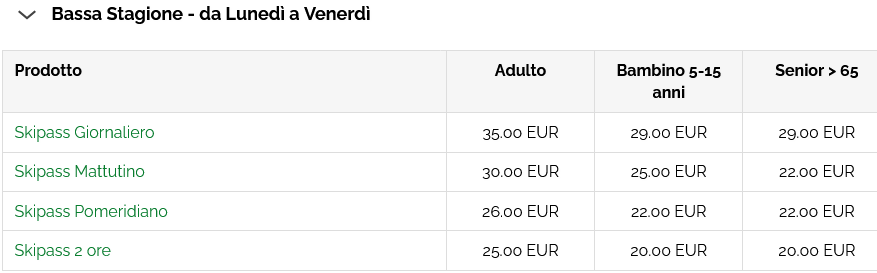 Prezzo skipass giornaliero intero: 48,00