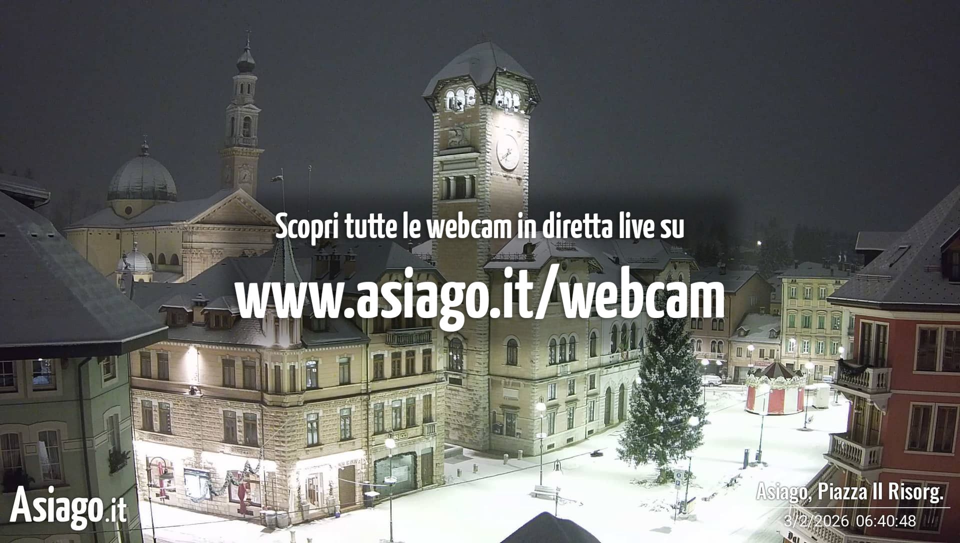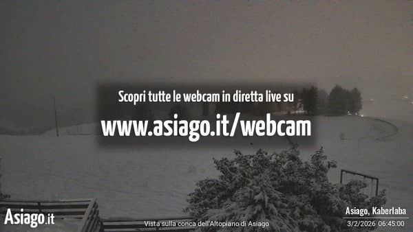 Webcam Asiago, le livecam per osservare in tempo reale le condizioni di innevamento e meteo nel comprensorio sciistico Asiago Sette Comuni. Le webcam sono puntate sulle ski area Kaberlaba, Roana Verena, Gallio, Campo Mulo e sulla città di Asiago. Webcam fornite da https://www.asiago.it/it/webcam/.