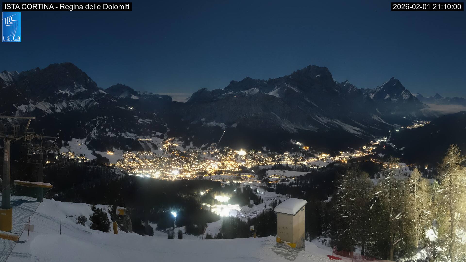 Home Veneto Cortina d'Ampezzo Webcam Cortina d'Ampezzo Webcam piste Cortina Webcam piste Cortina indietro avanti Webcam guarda LE webcam Scopri le Webcam di per vedere la situazione neve e meteo sulle piste da sci della località. Tofana Schuss Pista Olimpia delle Tofane Le 5 Torri Webcam Cortina dal Rifugio Faloria Webcam piste Cortina Webcam Faloria Vitelli Webcam Faloria Cortina seggiovia Padeon-Sonforca Pista Tondi di Faloria Bigontina webcam Cortina Punta Nera Ra Valles Pista Tondi, Rifugio Faloria, Monte Pomagagnon Rifugio Lagazuoi con vista sulla Tofana di Rozes Cortina paese - Corso Italia Webcam nelle vicinanze Webcam Faloria Cristallo - Cortina 0km Webcam San Vito di Cadore10km Webcam Misurina10km Webcam Selva di Cadore12km Offerte hotel: 7 giorni da 1769€ per persona Hotel Villa Argentina Cortina d'Ampezzo | Veneto Arrivo il 15/02/2026 7 giorni da 1769€ per persona Hotel Villa Argentina Cortina d'Ampezzo | Veneto Arrivo il 16/02/2026 7 giorni da 1769€ per persona Hotel Villa Argentina Cortina d'Ampezzo | Veneto Arrivo il 21/02/2026 7 giorni da 1769€ per persona Hotel Villa Argentina Cortina d'Ampezzo | Veneto Arrivo il 22/02/2026 Scopri tutte