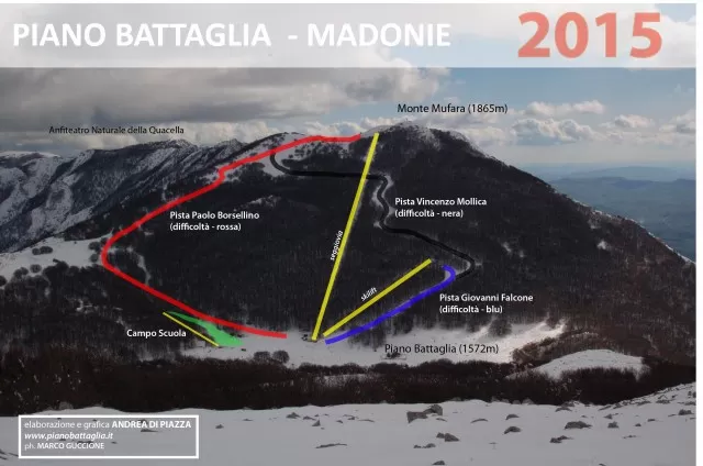 In provincia di Palermo, nel Parco delle Madonie, sorge Piano Battaglia. La piccola località è collocata in un'ampia conca carsica immersa in boschi di faggio. Gli impianti si trovano nel territorio del comune di Petralia Sottana e risalgono il monte Mufara,1865 m. Dall'inverno 2016 la nuova stazione sciistica di Piano Battaglia offre una nuova seggiovia biposto con una portata oraria di 800 persone, che permette ai turisti di raggiungere la cima della Mufara durante tutti i mesi dell'anno, uno skilift Mufaretta che porta in cima e piste completamente rifatte, allargate e messe in sicurezza.