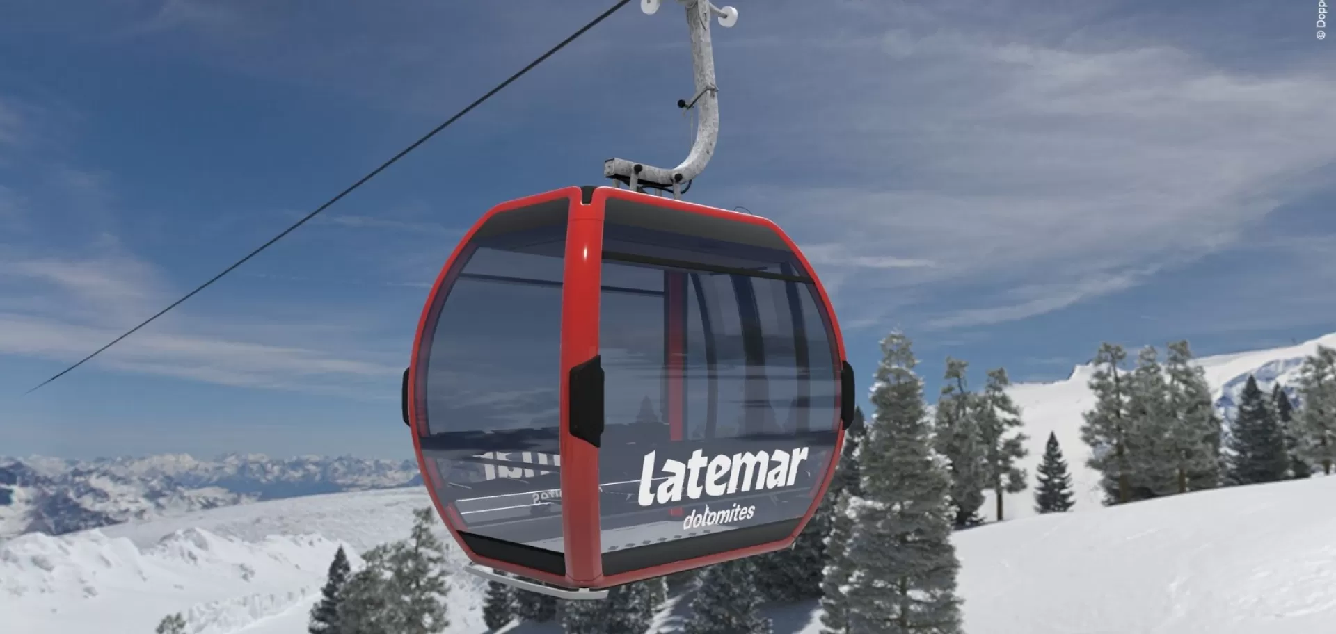 La cabinovia Latemar è un progetto di Doppelmayr e supererà i 255 metri di dislivello che dal piazzale degli impianti di Pampeago a 1760 metri separano l'arrivo in zona malga Zischgalm a 2.015 metri. L'impianto è situato in una zona strategica del comprensorio Latemar Dolomites, portando in quota chi si trova a Pampeago e vuole andare vierso la ski area della Pala di Santa e Obereggen. Il viaggio sarà ora completato in soli 4 minuti con una portata oraria di 2700 persone.