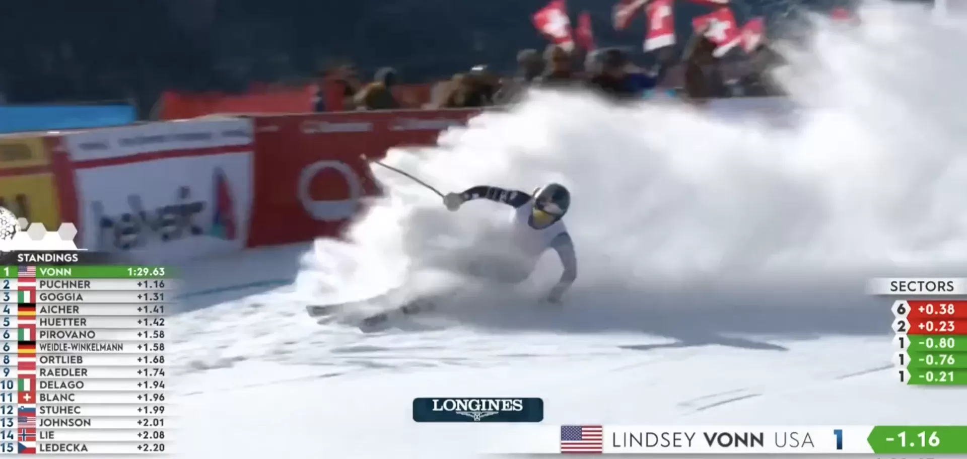 Lindsaey Vonn è tornata alla vittoria in Coppa del mondo dopo sette anni. La 41 enne statunitense, come si vede nel video di Eurosport, ha messo in fila tutte le avversarie con una prova strepitosa in cui è migliorata curva dopo curva fino a fare la differenza nella seconda metà di gara dove, chi guardava, avrà pensato di essere tornato indietro nel tempo.
