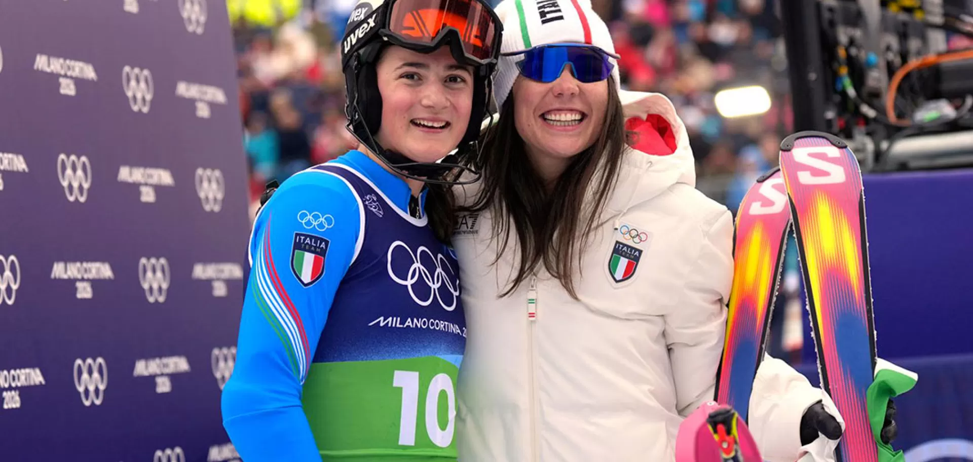 Le migliore coppia azzurra è quella formata da Nicol Delago e dalla 17 enne Anna Trocker, autrice di una prova coraggiosa che confermato il decimo posto già ottenuto dalla velocista in mattinata. Fuori già la mattina la coppia Goggia/Della Mea a causa di un caduta della bergamasca mentre un'inforcata della debuttante Giada D’Antonio esclude dalla classifica anche l'altra sorella Delago.