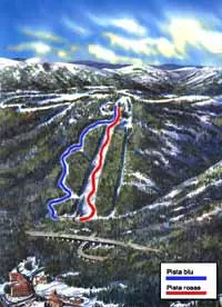 Due sono le piste per lo sci alpino, una rossa di 2050 m e una blu di 2220 m, dotate di innevamento programmato. A valle, dove confluiscono le due piste, si trova il campo scuola dove è presente un tappeto a nastro lungo 52 metri.