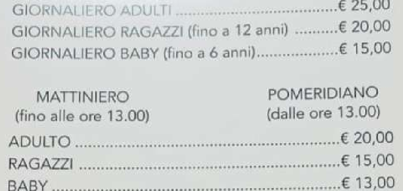 Prezzo skipass giornaliero intero: 25,00