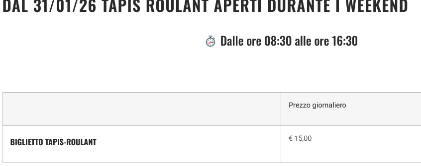 Prezzi funivia 2026