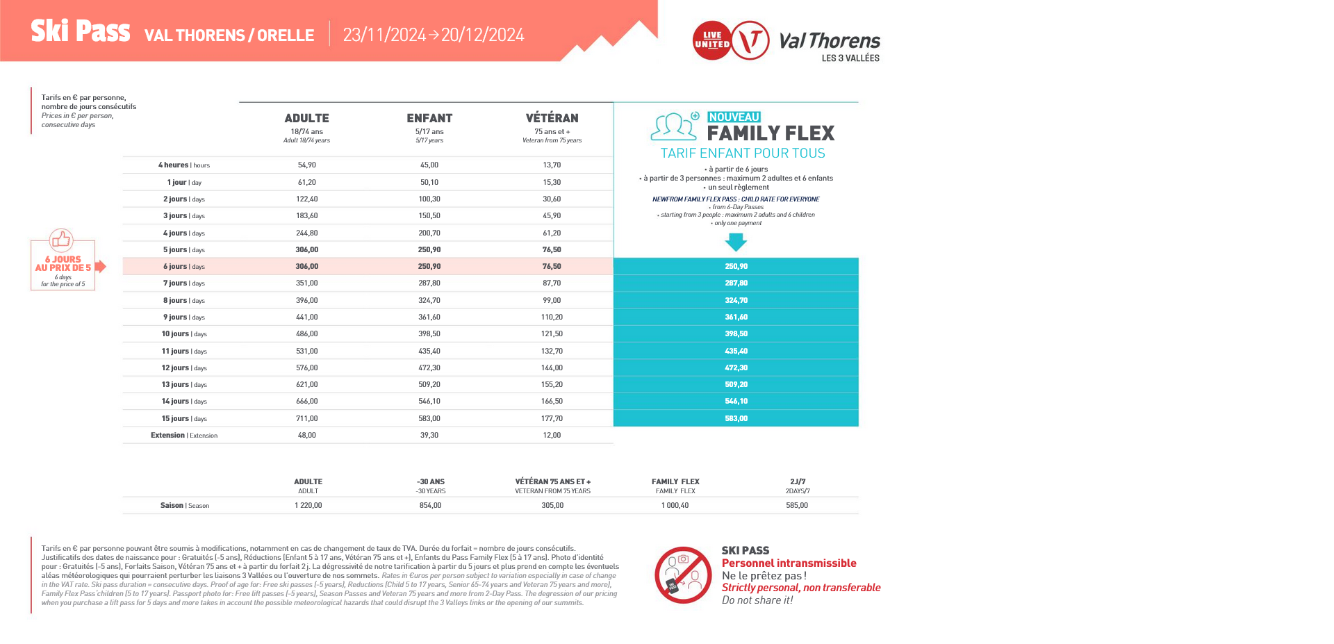 LISTINO PREZZI SKIPASS VAL THORENS- ORELLE 2025 - 2026