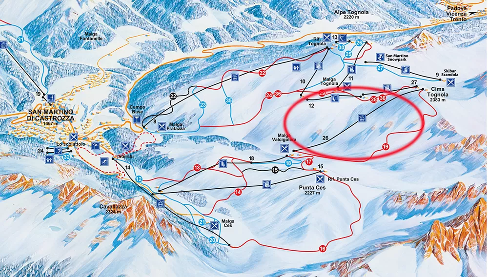 San Martino di Castrozza è una delle località che si è maggiormente rinnovata negli ultimi anni. Anche quest'anno aggiunge un ulteriore tassello nel processo di aggiornamento degli impianti di risalita, sostituendo la vecchia seggiovia biposto fissa con una telecabina a 10 posti. Inconfutabile è il miglioramento del confort seppure si sia optato per una portata non troppo elevata e una velocità ancora contenuta, anche in considerazione della pista servita.