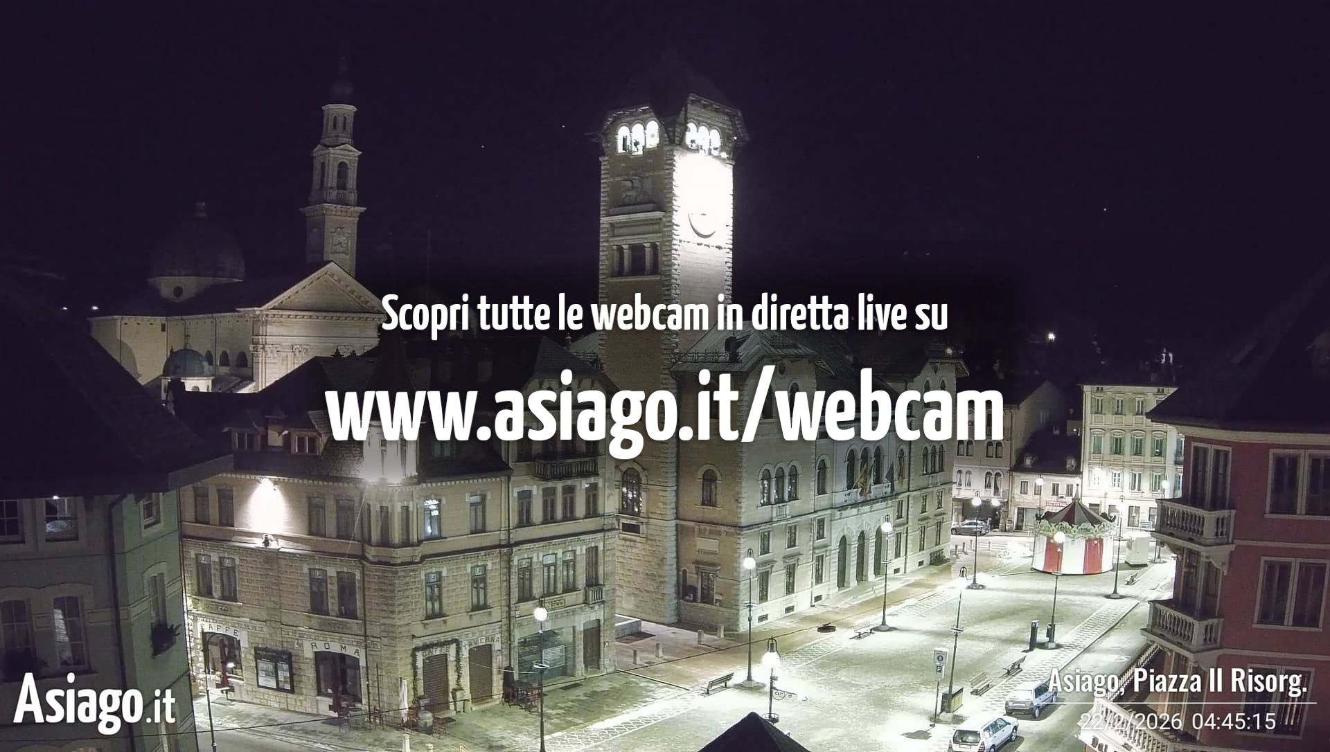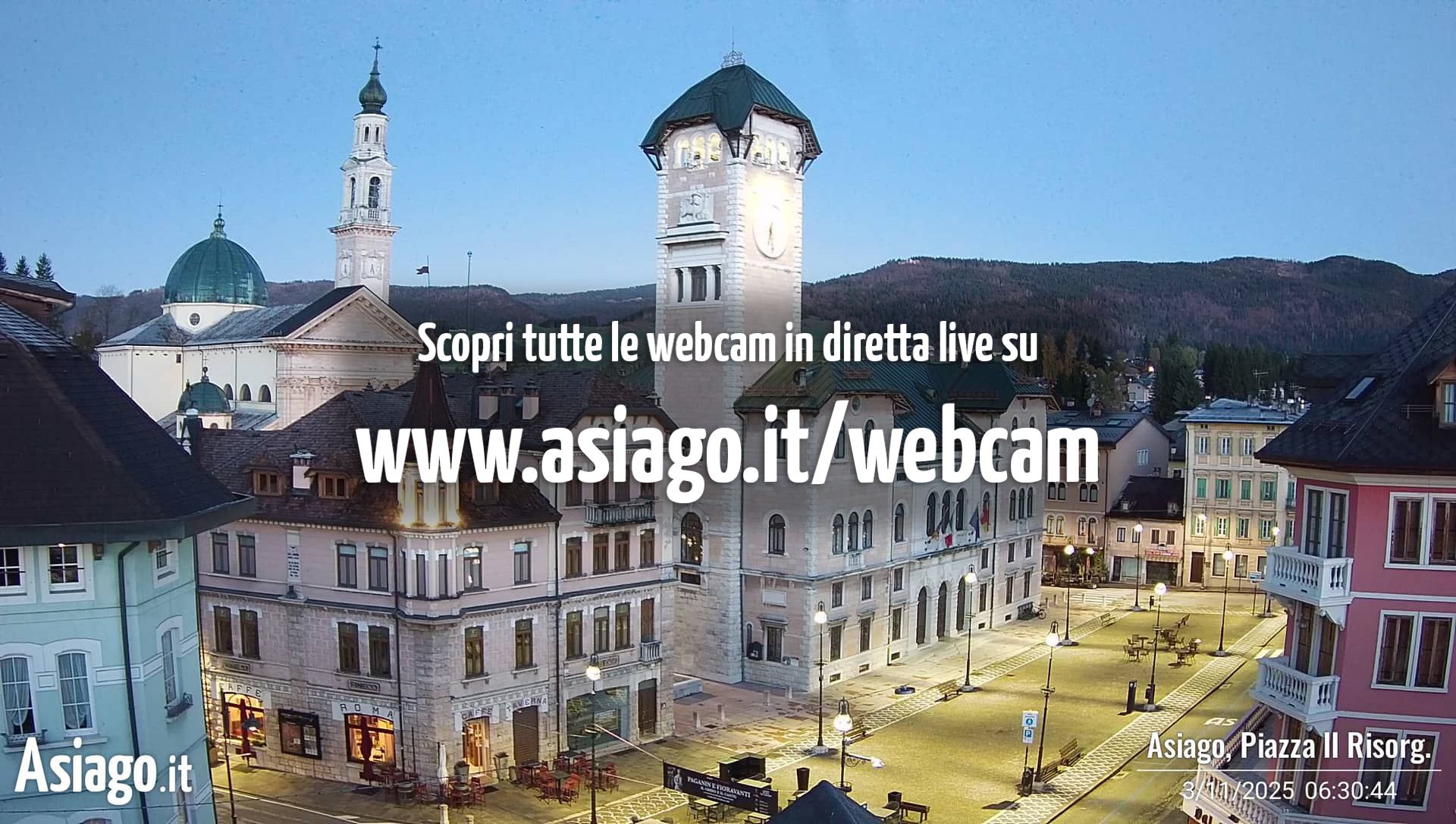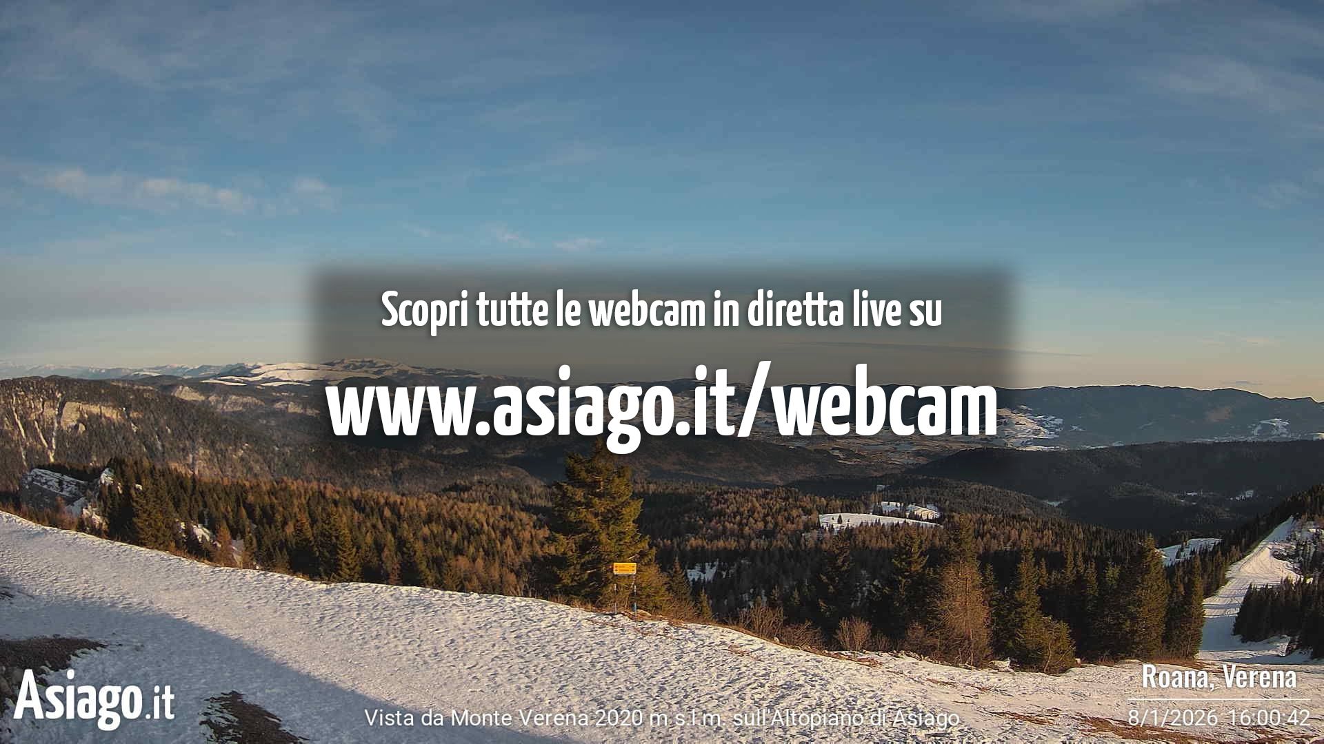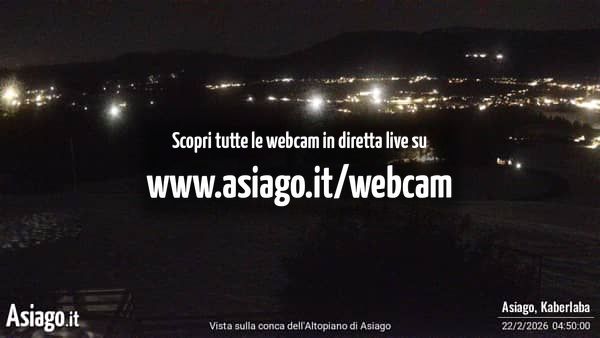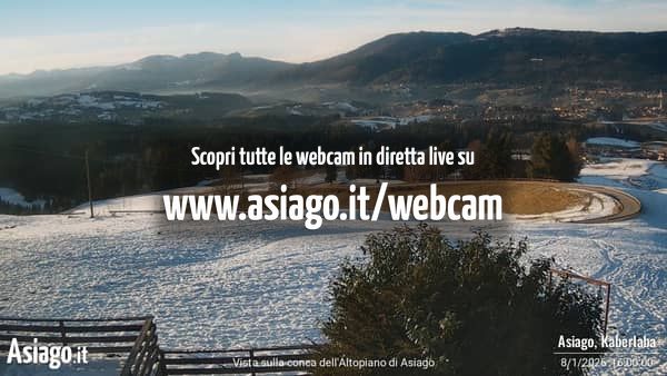 Webcam Asiago, le livecam per osservare in tempo reale le condizioni di innevamento e meteo nel comprensorio sciistico Asiago Sette Comuni. Le webcam sono puntate sulle ski area Kaberlaba, Roana Verena, Gallio, Campo Mulo e sulla città di Asiago. Webcam fornite da https://www.asiago.it/it/webcam/.