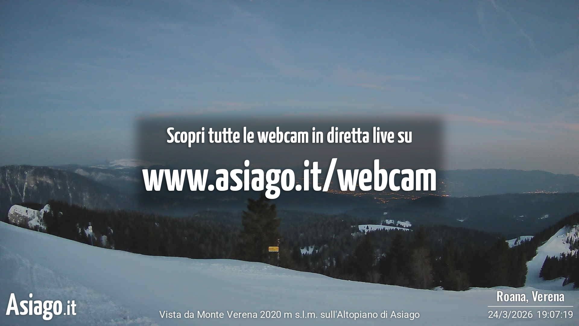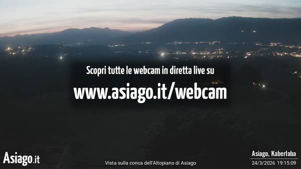 Webcam Asiago, le livecam per osservare in tempo reale le condizioni di innevamento e meteo nel comprensorio sciistico Asiago Sette Comuni. Le webcam sono puntate sulle ski area Kaberlaba, Roana Verena, Gallio, Campo Mulo e sulla città di Asiago. Webcam fornite da https://www.asiago.it/it/webcam/.