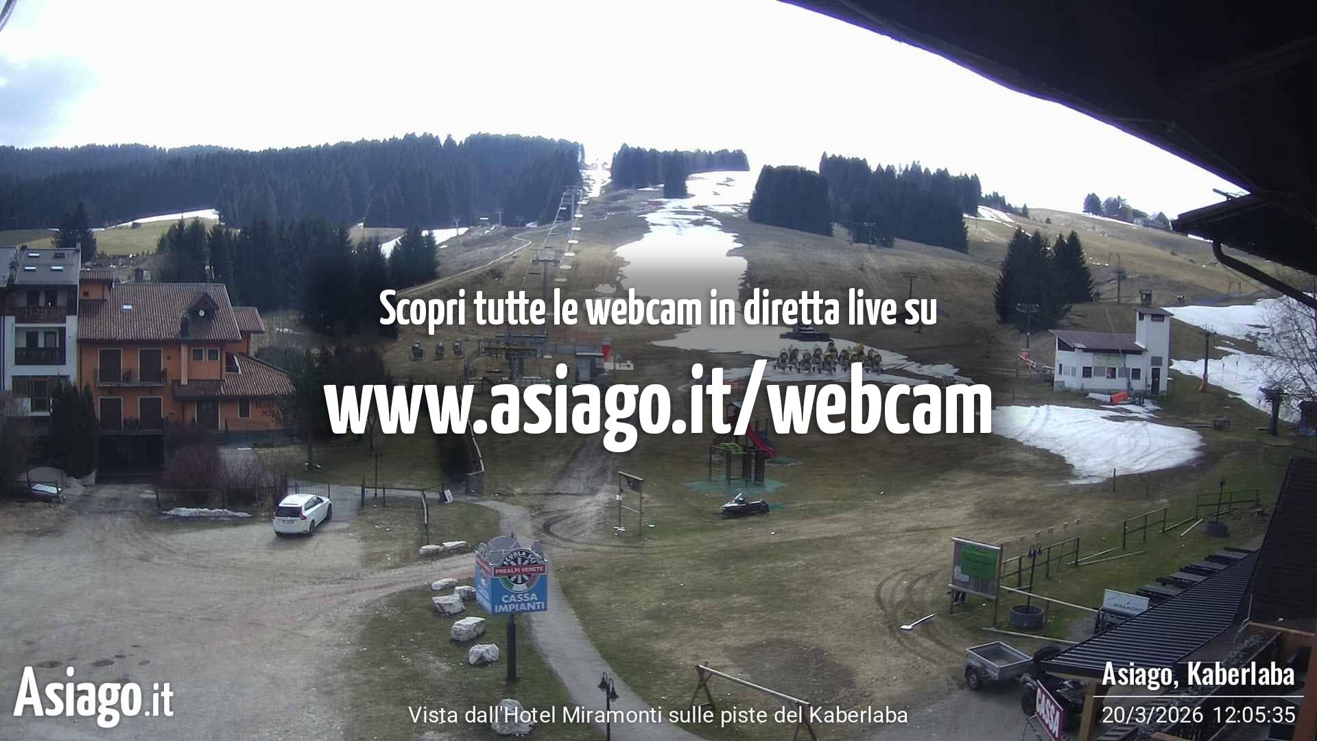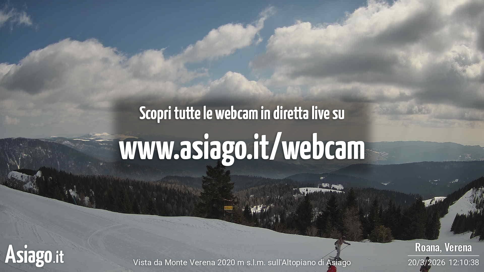 Webcam Asiago, le livecam per osservare in tempo reale le condizioni di innevamento e meteo nel comprensorio sciistico Asiago Sette Comuni. Le webcam sono puntate sulle ski area Kaberlaba, Roana Verena, Gallio, Campo Mulo e sulla città di Asiago. Webcam fornite da https://www.asiago.it/it/webcam/.
