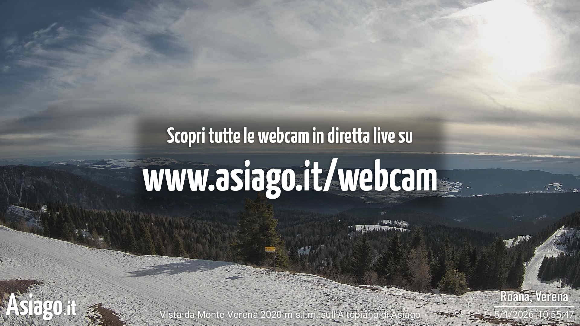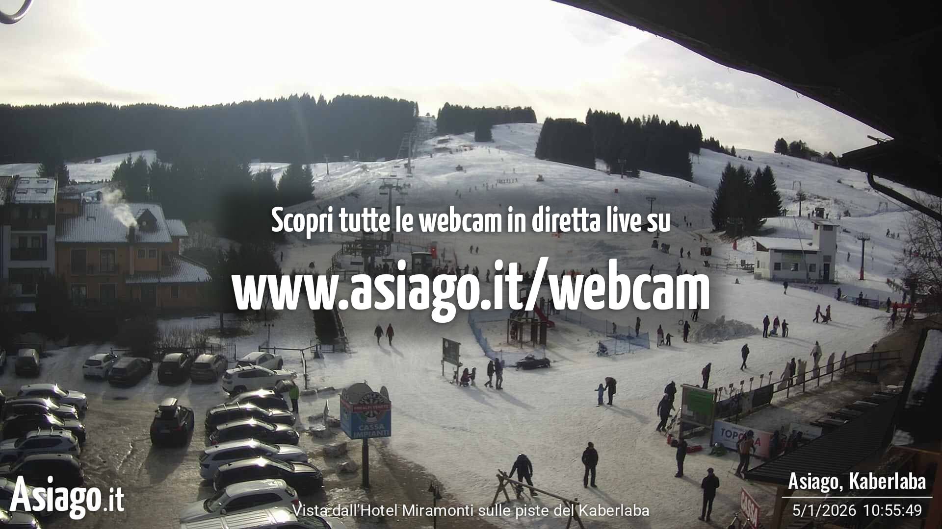 Webcam Asiago, le livecam per osservare in tempo reale le condizioni di innevamento e meteo nel comprensorio sciistico Asiago Sette Comuni. Le webcam sono puntate sulle ski area Kaberlaba, Roana Verena, Gallio, Campo Mulo e sulla città di Asiago. Webcam fornite da https://www.asiago.it/it/webcam/.