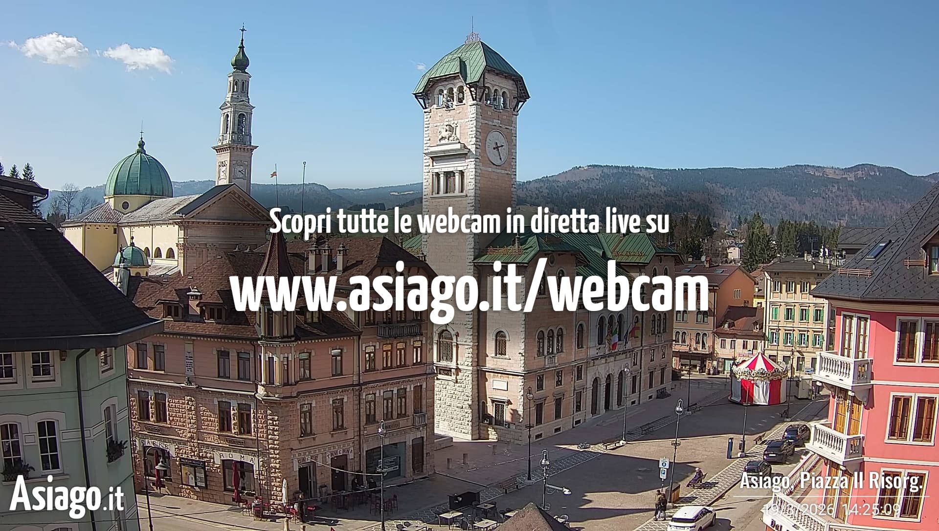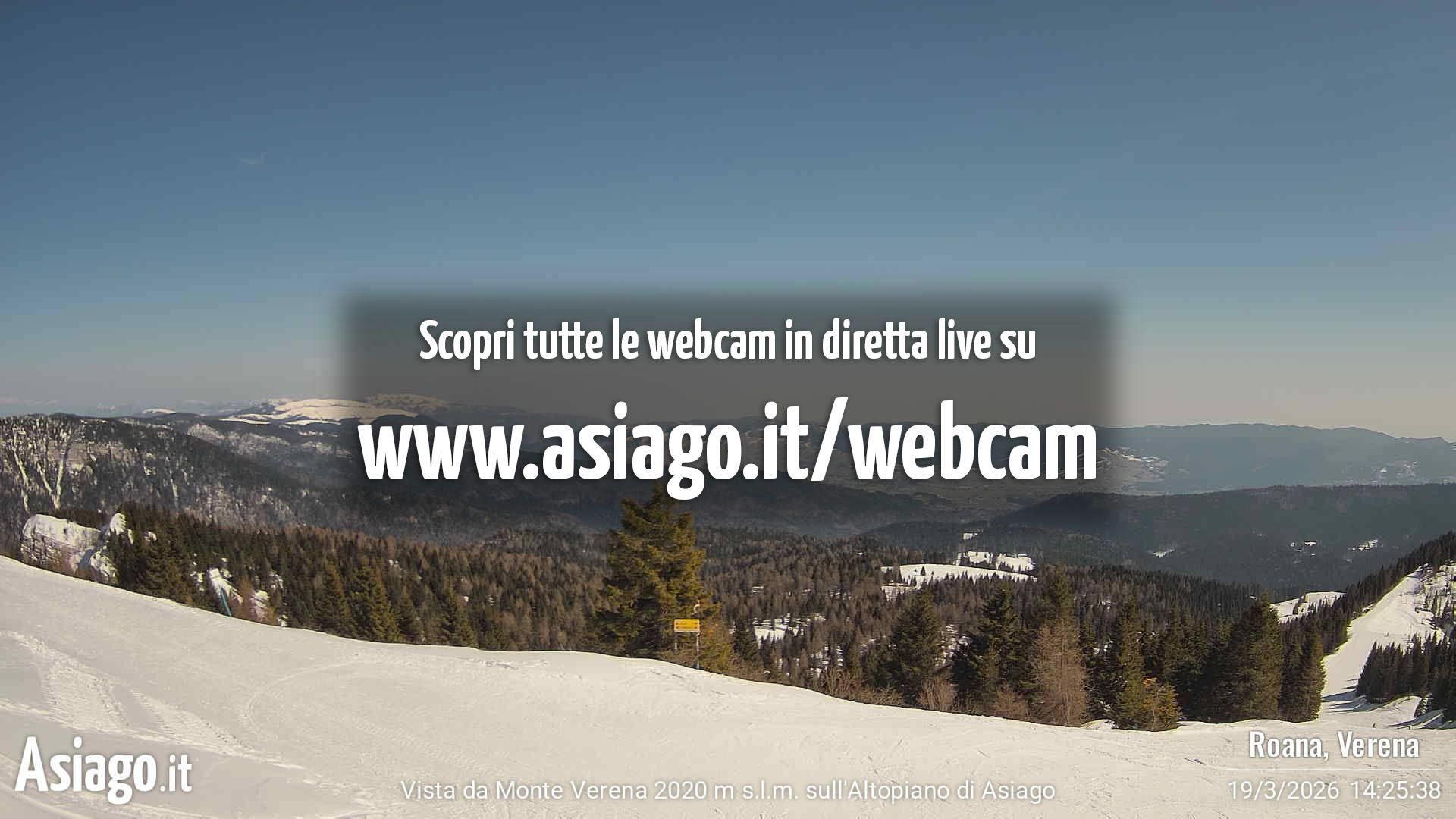 Webcam Asiago, le livecam per osservare in tempo reale le condizioni di innevamento e meteo nel comprensorio sciistico Asiago Sette Comuni. Le webcam sono puntate sulle ski area Kaberlaba, Roana Verena, Gallio, Campo Mulo e sulla città di Asiago. Webcam fornite da https://www.asiago.it/it/webcam/.