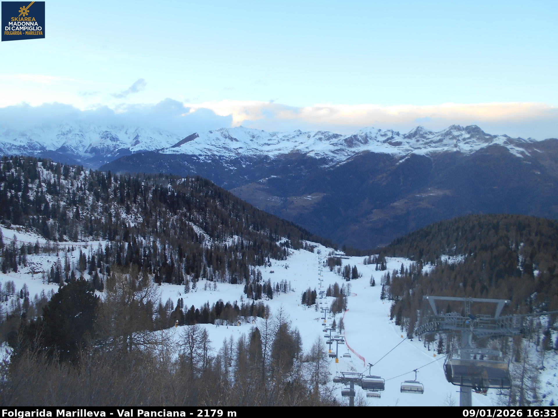 Webcam Folgarida Marilleva Monte Vigo vista Ortles Cevedale