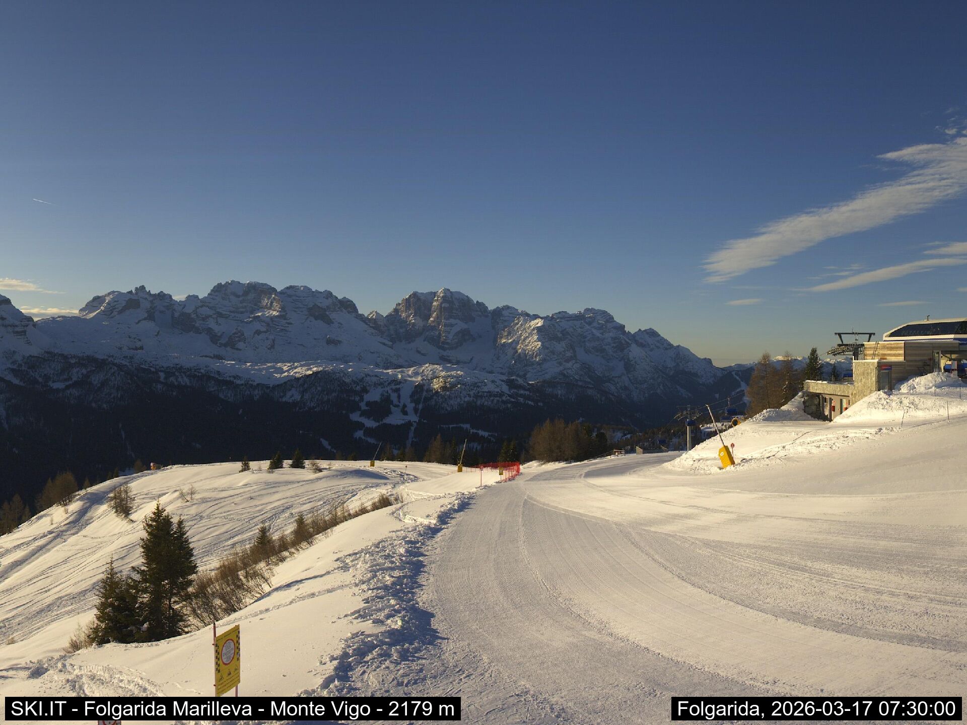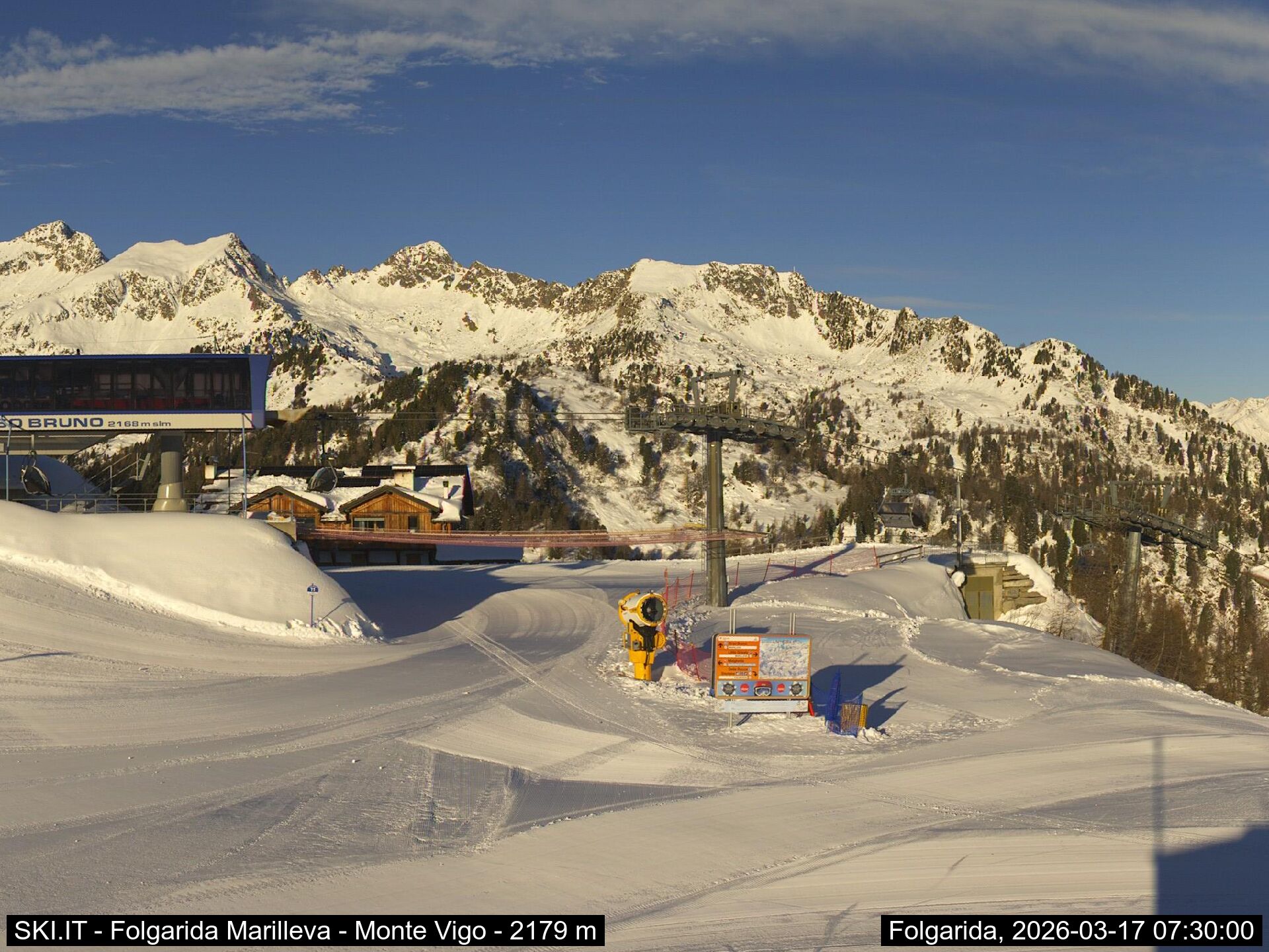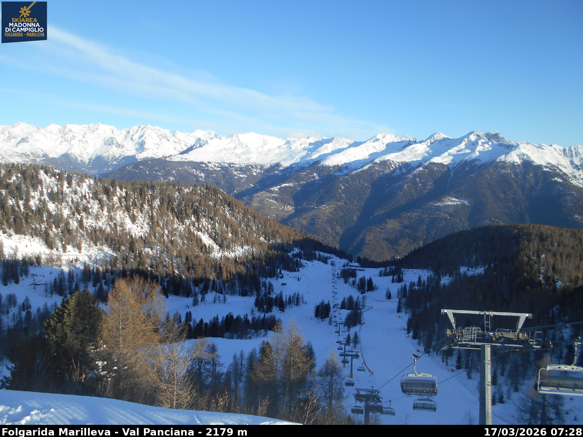 Webcamlive Folgarida - Marilleva. Le webcam sul comprensorio di Folgarida, collegato con Marilleva e Madonnda di Campiglio, in Val di Sole, Trentino. Dal Monte Spoverino al Monte Vigo con varie panoramiche sulle psite e sulle montagne circostanti (Gruppo Brenta e Ortles Cevedale)