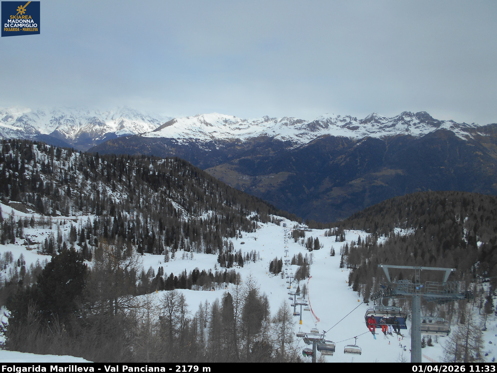 Webcamlive Folgarida - Marilleva. Le webcam sul comprensorio di Folgarida, collegato con Marilleva e Madonnda di Campiglio, in Val di Sole, Trentino. Dal Monte Spoverino al Monte Vigo con varie panoramiche sulle psite e sulle montagne circostanti (Gruppo Brenta e Ortles Cevedale)