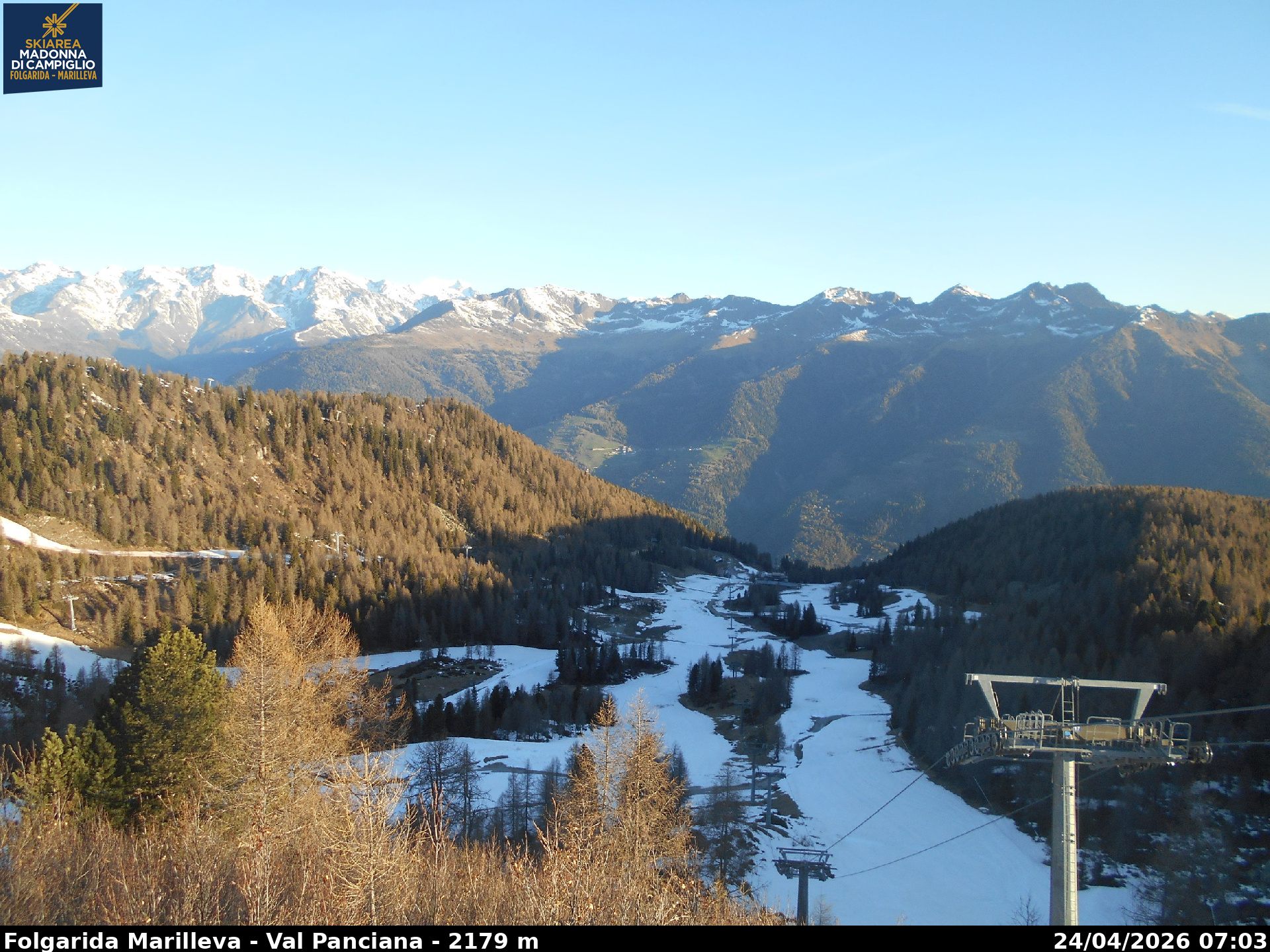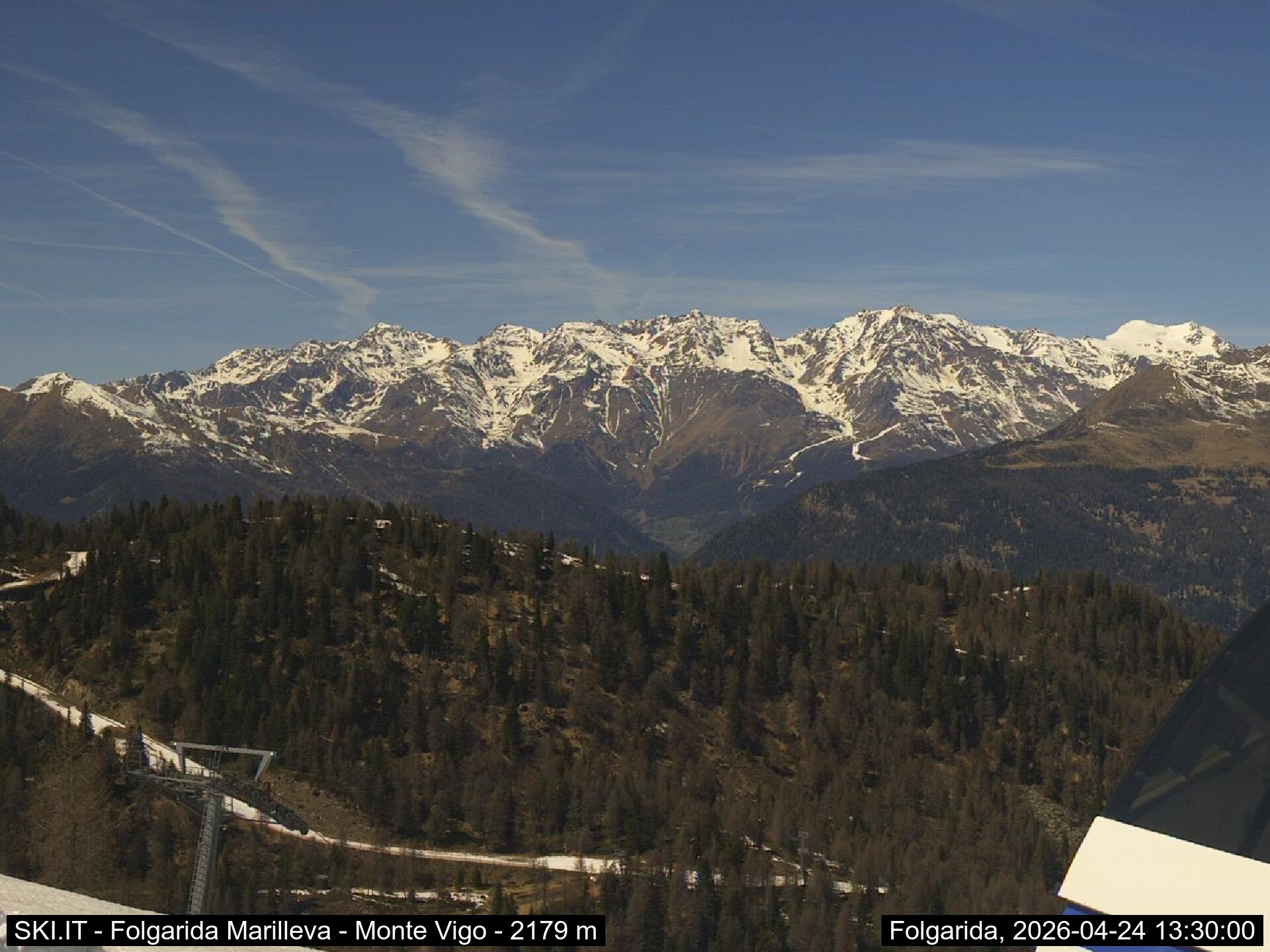 Webcamlive Folgarida - Marilleva. Le webcam sul comprensorio di Folgarida, collegato con Marilleva e Madonnda di Campiglio, in Val di Sole, Trentino. Dal Monte Spoverino al Monte Vigo con varie panoramiche sulle psite e sulle montagne circostanti (Gruppo Brenta e Ortles Cevedale)