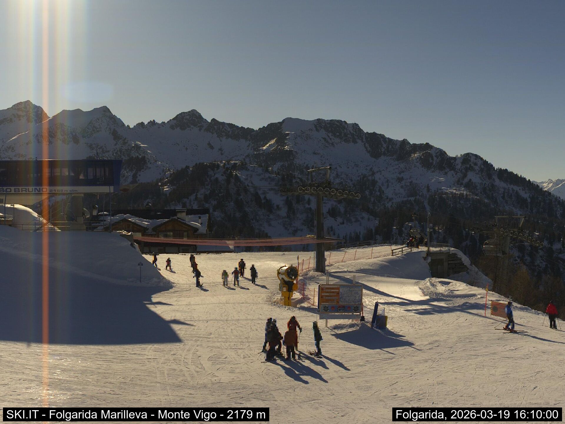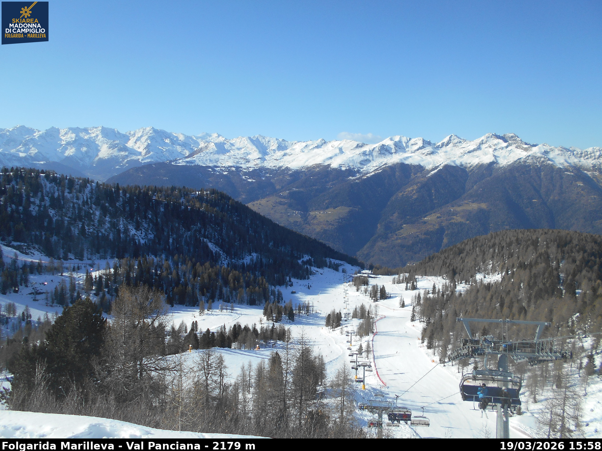 Webcamlive Folgarida - Marilleva. Le webcam sul comprensorio di Folgarida, collegato con Marilleva e Madonnda di Campiglio, in Val di Sole, Trentino. Dal Monte Spoverino al Monte Vigo con varie panoramiche sulle psite e sulle montagne circostanti (Gruppo Brenta e Ortles Cevedale)