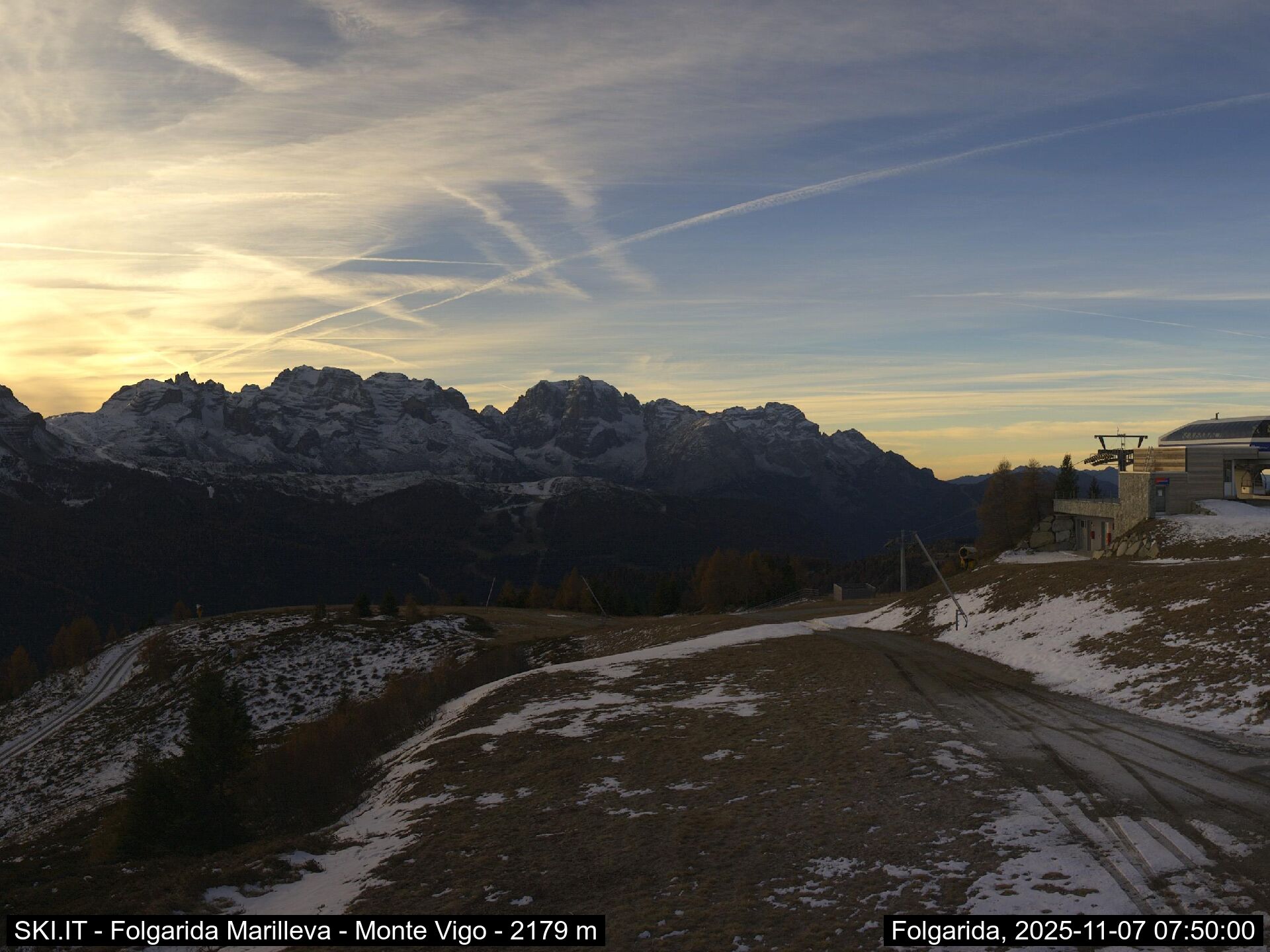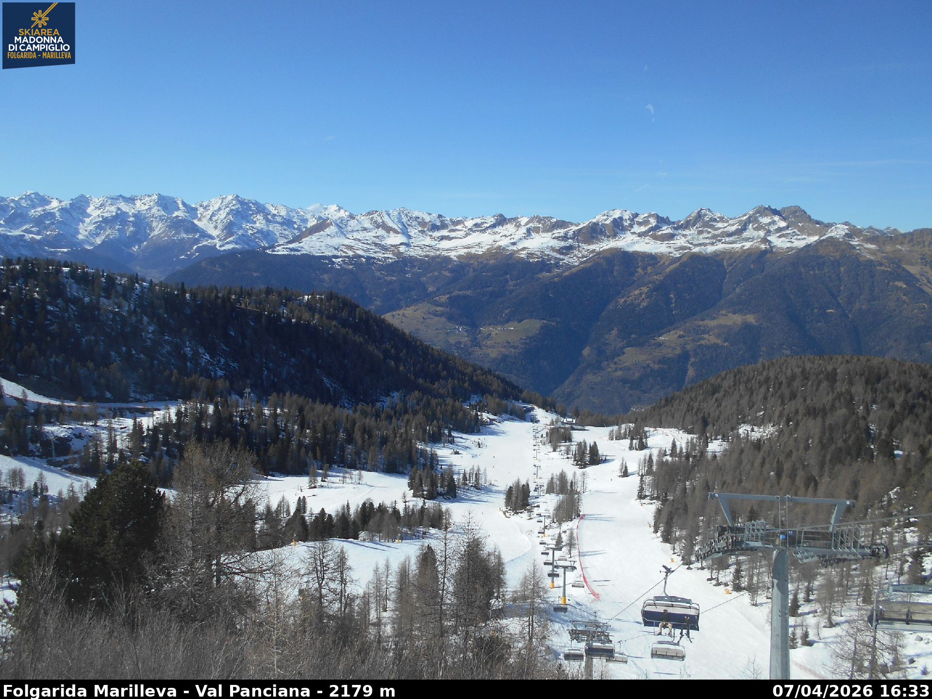 Webcamlive Folgarida - Marilleva. Le webcam sul comprensorio sciistico di Marilleva, in Val di Sole (Trentino). Le webcam permettono di vedere l'innevamento e le condizioni meto sul Monte Vigo, Mlaghet Aut, Daolasa, sul Monte Spolverino, una webcam inquadra poi il Gruppo del Brenta visto dalle piste di Marilleva.