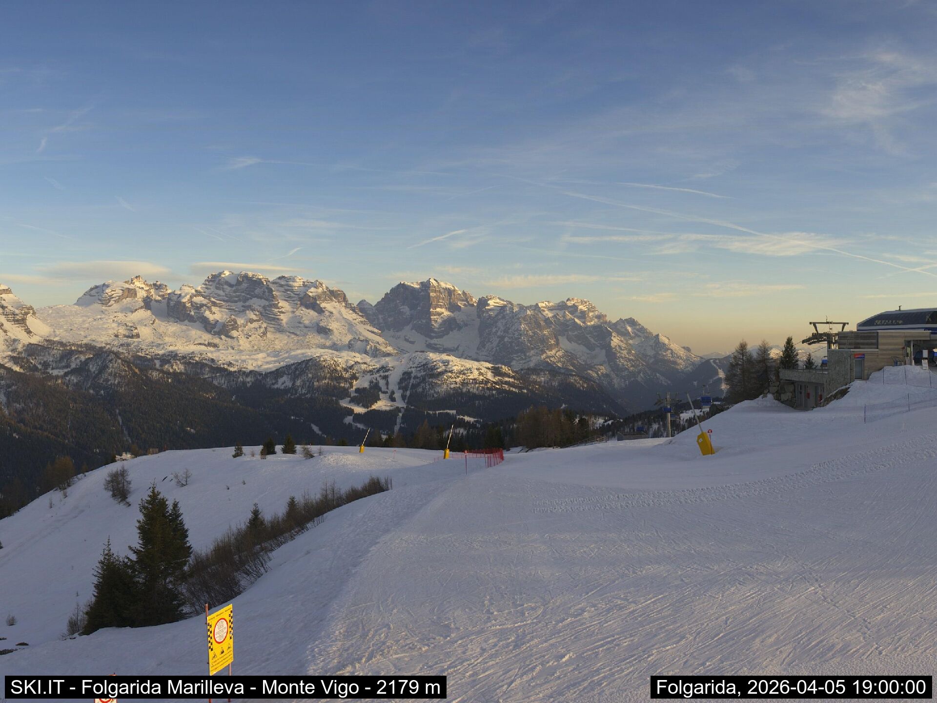 Webcamlive Folgarida - Marilleva. Le webcam sul comprensorio sciistico di Marilleva, in Val di Sole (Trentino). Le webcam permettono di vedere l'innevamento e le condizioni meto sul Monte Vigo, Mlaghet Aut, Daolasa, sul Monte Spolverino, una webcam inquadra poi il Gruppo del Brenta visto dalle piste di Marilleva.