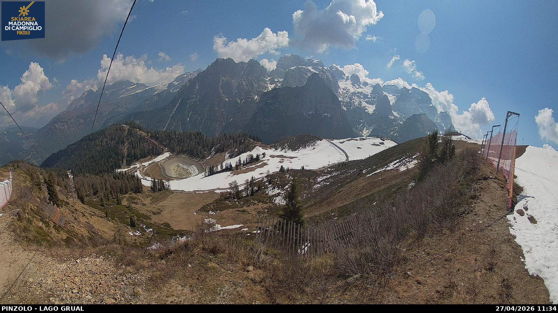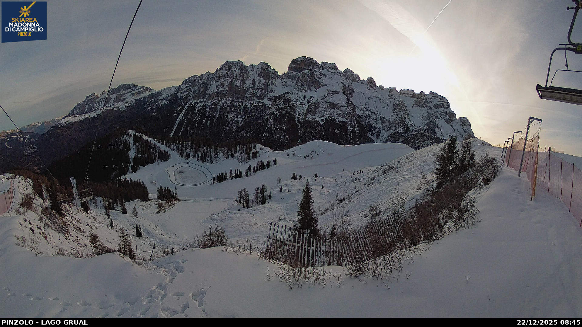 Webcam panoramica Pinzolo. Le webcam sul comprensorio sciistico di Pinzolo, collegato sci ai piedi con Madonna di Campiglio, in Trentino. Le webcam inquadrano la pista Tulot, il lago Grual e Malga Cioca.