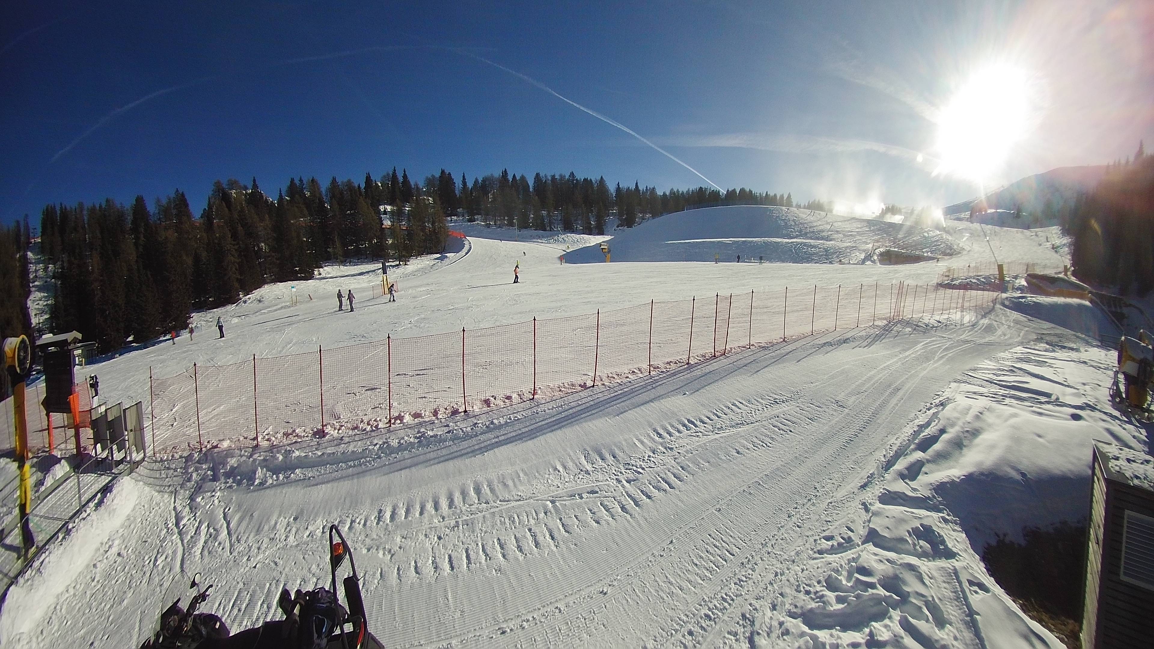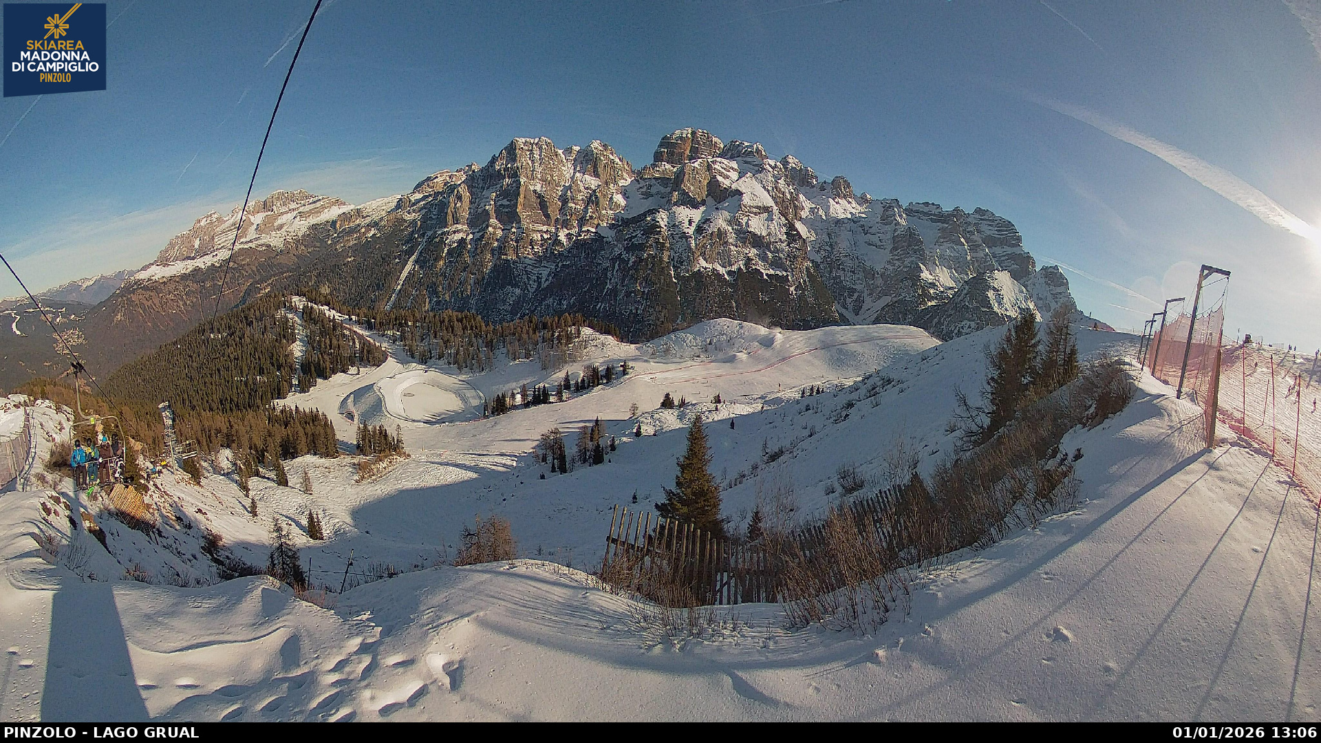 Webcam panoramica Pinzolo. Le webcam sul comprensorio sciistico di Pinzolo, collegato sci ai piedi con Madonna di Campiglio, in Trentino. Le webcam inquadrano la pista Tulot, il lago Grual e Malga Cioca.