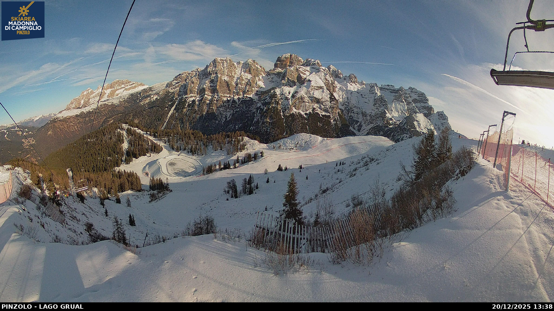 Webcam panoramica Pinzolo. Le webcam sul comprensorio sciistico di Pinzolo, collegato sci ai piedi con Madonna di Campiglio, in Trentino. Le webcam inquadrano la pista Tulot, il lago Grual e Malga Cioca.